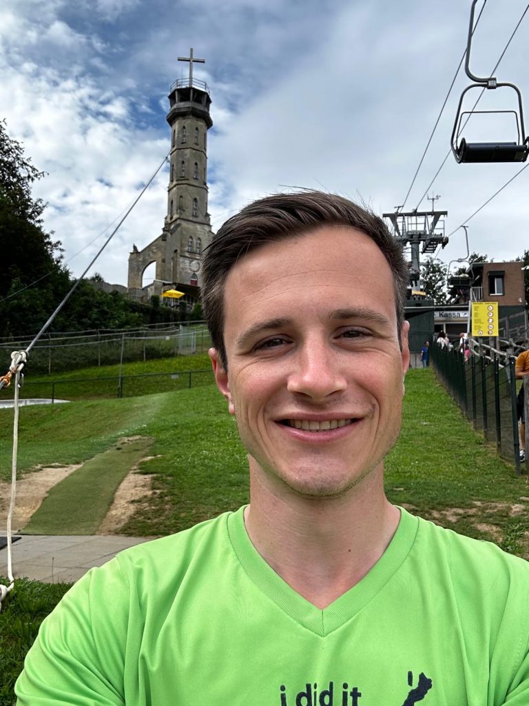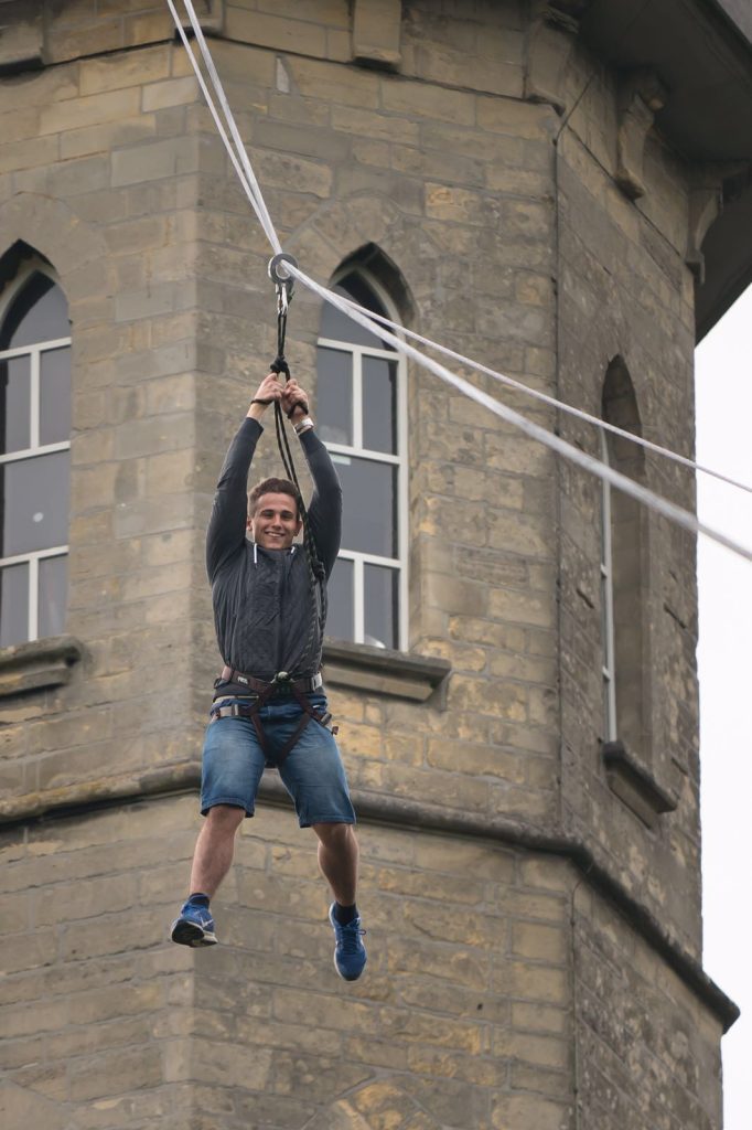 Staande op de rand van de 35 meter hoge uitkijktoren is het toch wel even slikken. Eenmaal onderweg is het gevoel onbeschrijfelijk en giert de adrenaline door je lichaam!