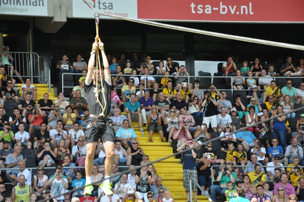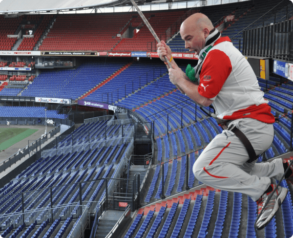 Het is bij Breakpoint mogelijk om werken op hoogte te implementeren tijdens teambuildingssessies. In diverse stadions van betaald voetbal clubs hebben we tokkelen, abseilen of een pendule verzorgd rondom de stadions o.a. voor seizoensopeningen, fandagen of personeelsuitjes.