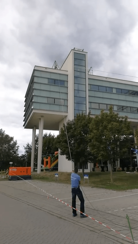 Tokkelen vanaf een gebouw in Sittard