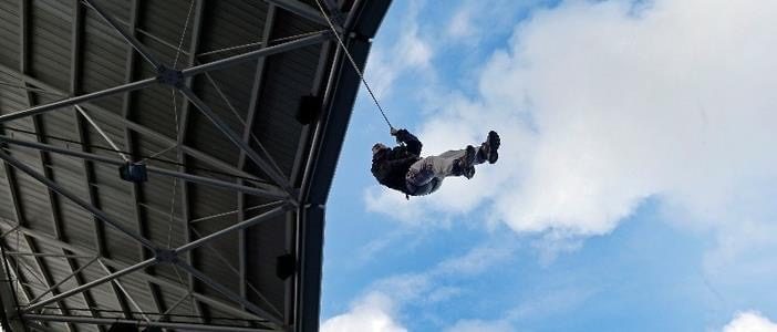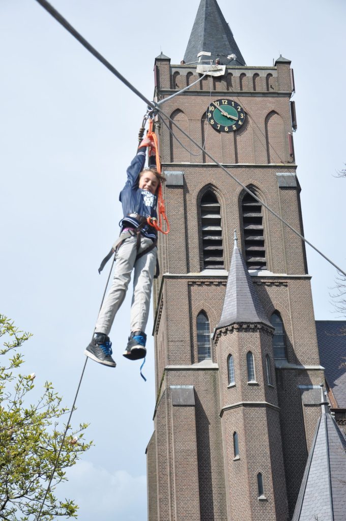 Dit zijn twee 11 mm lijnen die diagonaal opgespannen worden waarbij je met twee katrollen ( op iedere lijn één ) met handschoenen aan naar beneden glijdt. De katrollen zijn met elkaar verbonden en zitten vast aan de veiligheids gordel. Je zit altijd op een extra beveiliging vast totdat de remmer beneden een sein geeft dat hij of zij klaar is om eventueel bij te remmen. Dit mocht de deelnemers zelf niet voldoende of niet remmen.